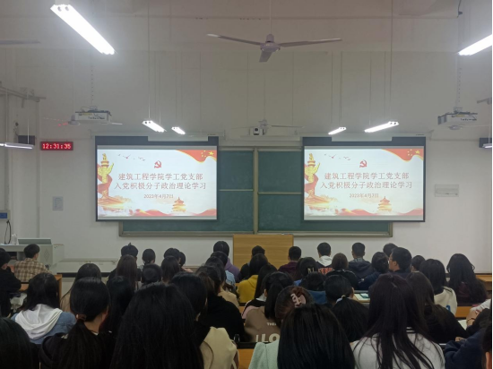 为进一步做好入党积极分子的教育工作,加强对入党积极分子的培养,提高党员发展的综合质量,端正入党积极分子的入党动机,提升入党积极分子的思想觉悟。2023年4月7日中午,建筑工程学院学工党支部组织入党积极分子于开封北院C101进行政治理论学习,21级全体入党积极分子参加会议。
