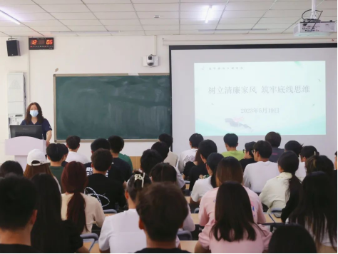 为深入学习贯彻习近平总书记关于注重家庭家教家风建设的重要论述,进一步推进清廉学校建设,教育引导学生坚定理想信念,树立清廉意识。2023年5月19日中午,建筑工程学院学工党支部书记马春燕以“树立清廉家风,筑牢底线思维”为主题在郑州校区SC304教室讲授专题党课,2022级全体入党积极分子参加。