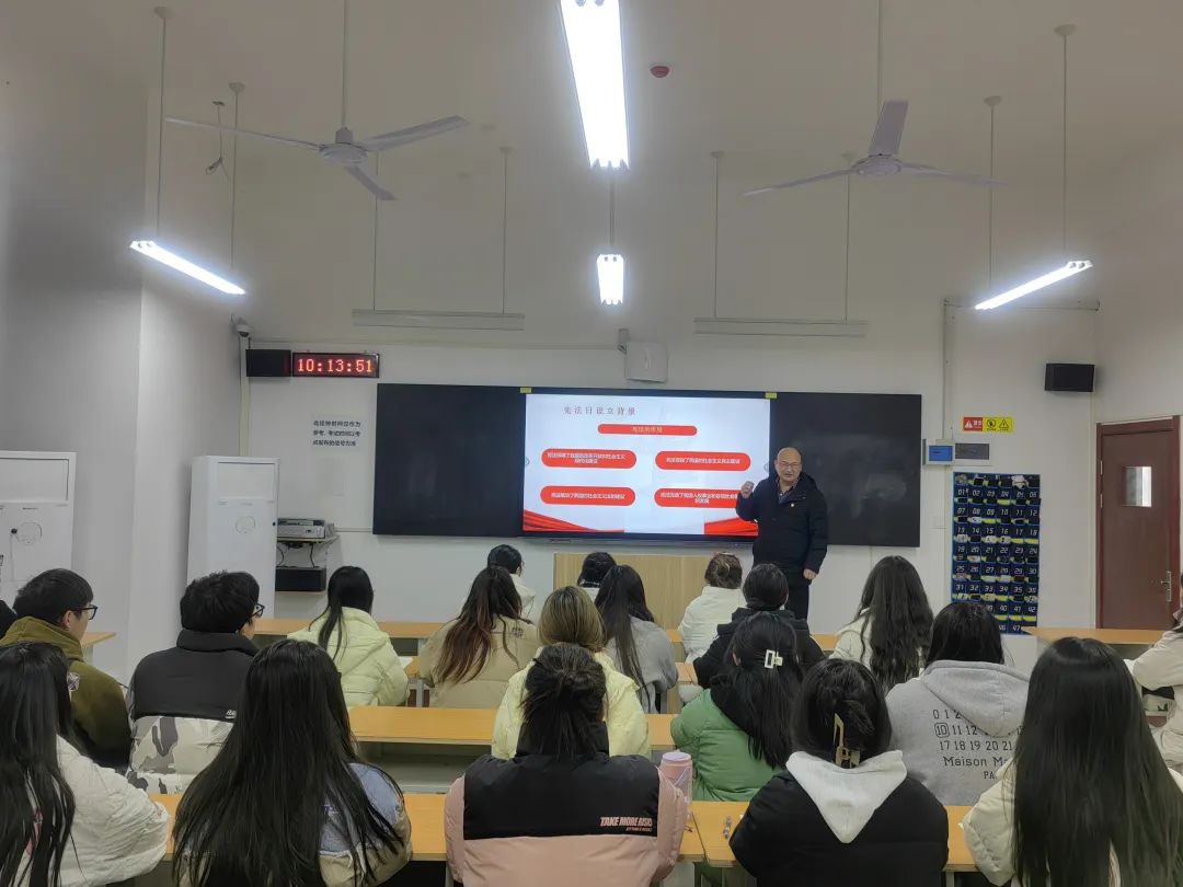为弘扬宪法精神,树立法治信仰,深入开展普法宣传教育,2023年12月1日,建筑工程学院党总支书记张虎为同学们讲授题为“弘扬宪法精神,维护宪法权威”主题思政课。