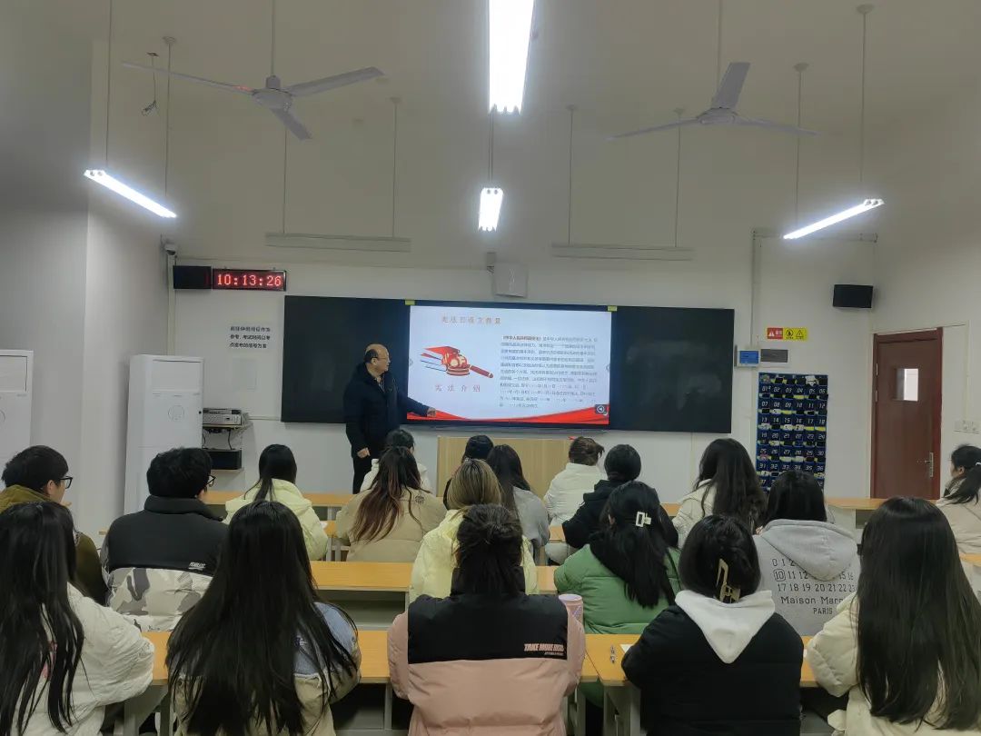 最后,张虎希望同学们牢固树立社会主义法治信仰,筑牢法治的根基,号召同学们行动起来,深入学习宪法,坚定法治信仰,做知法、懂法、守法、用法的大学生,在即将走入社会之时,不忘宪法的规范,肩负起建设祖国的责任。