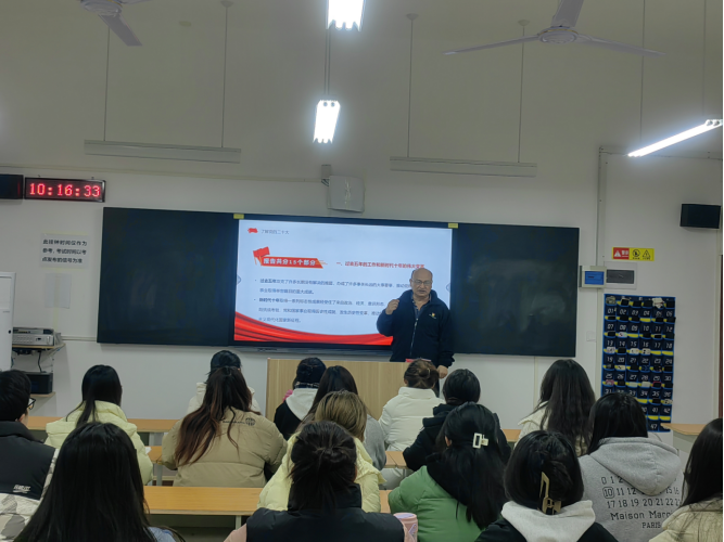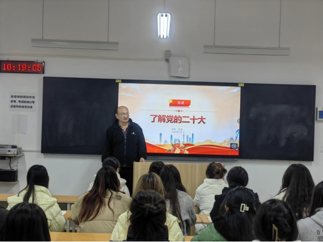 回望百年,青春向党。一百年接续奋斗、凯歌前行,一代又一代青年积极投身党领导的革命、建设、改革的伟大事业,用青春之我创造青春之中国、青春之民族,让青春在奉献中绽放绚丽之花。2023年3月16日,建筑工程学院教工党支部书记张虎在开封校区C106为学生讲授以“了解党的二十大”为主题的专题党课。