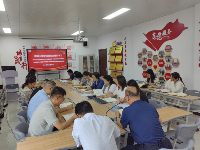 2024年6月4日下午,建筑工程学院党总支在郑州校区办公楼516党员活动室(开封校区C202)组织开展政治理论学习活动。本次学习采取东西校区视频连线,线上、线下相结合的方式,会议由建筑工程学院党总支书记张虎主持,院长李勇及全体教职工参加。