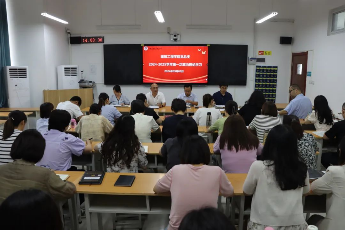 2024年9月3日下午,建筑工程学院党总支在开封校区北院C106教室组织开展政治理论学习活动。会议由建筑工程学院党总支书记张虎主持,院长李勇及全体教职工参加。