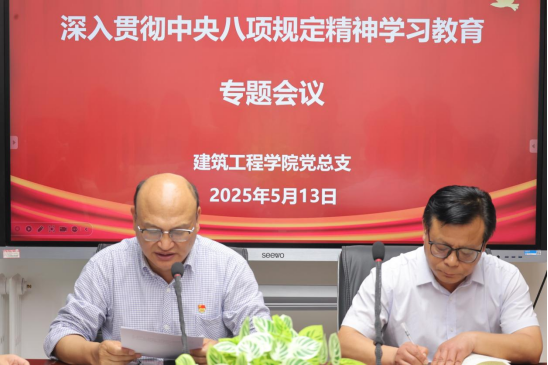 为深入贯彻习近平总书记关于作风建设的重要论述,坚定不移将中央八项规定精神落到实处,坚决纠治“四风”问题,推动全面从严治党不断向纵深迈进,切实让学习教育入脑入心、见诸行动、收获实效,2025年5月13日,建筑工程学院党总支召开关于深入贯彻中央八项规定精神学习教育查摆推进会。本次会议由建筑工程学院党总支书记张虎主持、建筑工程学院党总支副书记、院长李勇,党总支副书记刘亚娟及全体党员教师参加。
