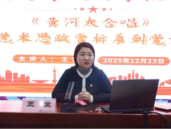 活动中,王莹围绕《黄河大合唱》的历史背景、文化内涵与思政价值展开讲解。她指出,作品以音乐叙事将个体命运与民族抗争紧密结合,展现了中国共产党领导下的文化创造力与精神凝聚力,并强调入党积极分子应从红色经典中汲取精神养分,坚定“四个自信”,在实践中践行初心使命。