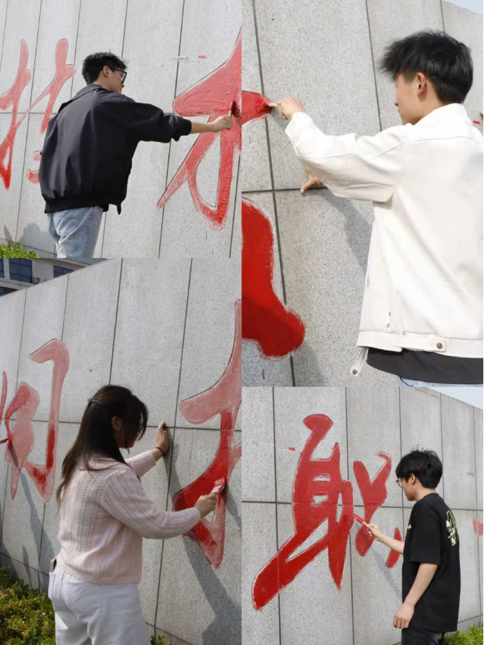 全体师生通过亲手为校名焕新,让校园标识更加醒目鲜亮,也让承载着七十年办学底蕴的校名体现出历久弥新的精神内核、昂扬向上的奋进姿态,更在一笔一画的精心描摹中,将爱校情怀与初心使命深深镌刻进师生心中,彰显了学工党支部党建与育人深度融合的工作实效、青年学子以行践诺爱校荣校的责任担当。全体党员干部坚持以学促干、以干践行,把对党和学校的赤诚热爱转化为履职尽责的实际行动,让正确政绩观融入日常、化作经常,共同守护校园文化根脉,共迎学校七十华诞。