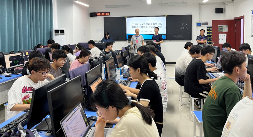 为了更好的提升工程造价数字化应用技能水平,更好地推进岗课赛证综合育人,助力应用型人才培养,5月20日上午,建筑工程学院工程管理教研室顺利完成2023年“1+X”工程造价数字化应用职业技能等级证书考试。本次共有2021级工程造价专业188名学生参加考试,学生参考率100%。