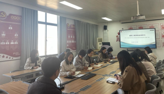 2023年11月7日下午,建筑工程学院组织开展2023年秋季学期第五次业务学习活动,本次学习采取郑州校区A516与开封北校区C104远程视频连线,线上、线下相结合的方式进行,会议由建筑工程学院院长李勇主持,学院党总支书记张虎和全体专兼职教师参加会议。