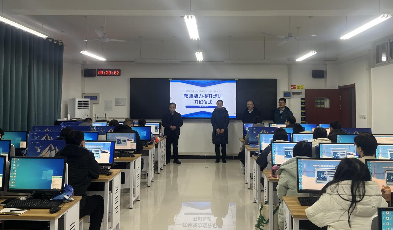 为进一步提升建筑工程学院教师的教学水平、实训软件与设备操作能力和专业素养,促进教师之间的学术交流与合作,2024年1月11日至1月17日,建筑工程学院组织开展教师教学与实训能力提升培训,学校教务处副处长李元元出席此次培训,学院全体教师参加了培训,培训由建筑工程学院院长李勇主持。