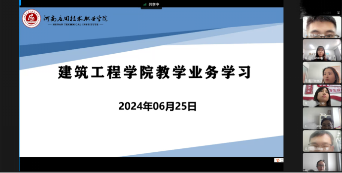 2024年6月25日下午,建筑工程学院组织开展2024年春季学期第十次业务学习活动,旨在加强期末教学工作管理,顺利完成本学期的教学工作,明确下一阶段的工作方向和目标,凝聚全体教师共识,推动学院各项工作高质量发展。本次学习采取线上会议的方式进行,会议由建筑工程学院院长李勇主持,学院党总支书记张虎和全体教师参加会议。