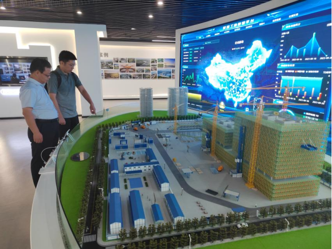 在智慧建造展示中心,李勇一行深入了解目前智能建造发展的最新成果以及应用情况,庄建红重点介绍了在智慧建造专业建设方面最核心的数字造价、数字施工、智慧工地、BIM应用等内容。