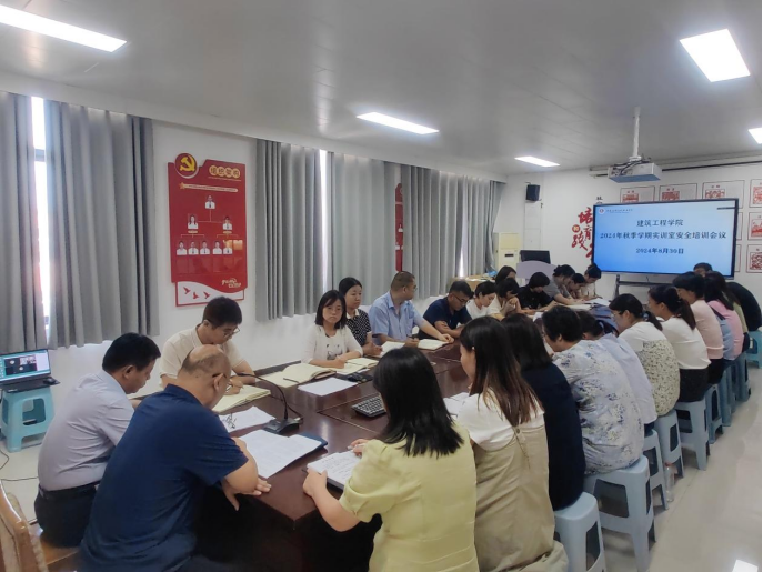 为积极响应学校关于加强实训室安全管理的号召,进一步提升建筑工程学院全体师生及实训室管理人员的安全意识与应急处理能力,确保教学科研活动的安全有序进行,建筑工程学院于2024年8月30日在郑州校区516党员活动室召开2024年秋季学期实训室安全培训会议,会议由院长李勇主持,书记张虎及全体教师参加会议。