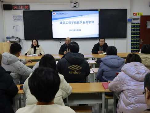 为进一步强化教职工的责任意识,提升教学质量与管理水平,确保学院各项工作平稳有序进行,建筑工程学院于3月4日下午在开封校区F107开展教学业务学习。此次学习活动由院长李勇主持,党总支书记张虎及全体教职工参加。