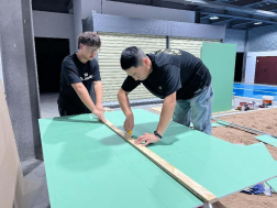 本次项目参照行业标准,要求选手在8小时内完成基层处理、砂浆抹灰、肌理塑造等全流程操作。项目现场,熊富豪、王浩然、谭舒文、卢雨晨、李超强几位学生在"弹线定位""灰板托浆"等基础工序阶段反复修整,保证施工精度,石膏板切割过程,识图与算量是关键。"尺寸误差不能超过1毫米,我们组返工了三次才达标。"熊富豪说道。指导老师韩晓芳介绍:“从最开始的集体讨论,到亲手挑选每一块轻钢龙骨、每一袋石膏粉,到最终完成项目,学生坚持每天训练,这种精益求精的态度正是职业教育的精髓。”