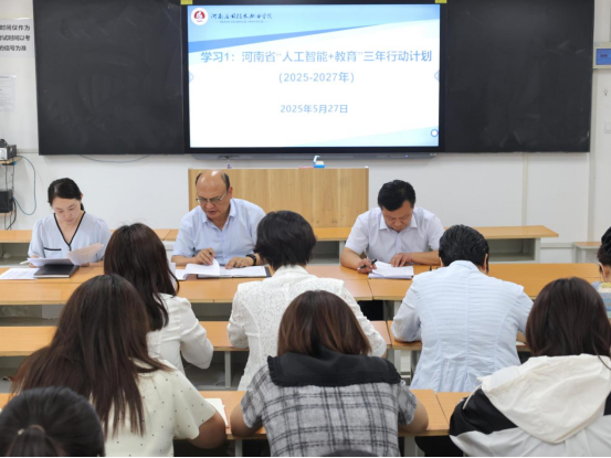 会上,李勇带领教师们深入学习了《河南省“人工智能 + 教育”三年行动计划(2025 - 2027年)》,鼓励教师们积极思考如何将人工智能技术与建筑工程学院的专业教学深度融合。他还分享了一些前沿的教育技术应用案例,引导教师们探讨创新教学模式、提升教学效果的方法。
