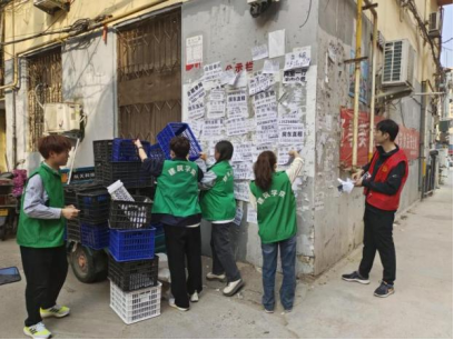 下午15点,周静怡等15名学生志愿者共同前往国棉五厂开展志愿活动。大家齐心协力、热情满满,拿起铲子、垃圾钳等清洁工具,对社区墙壁上的小广告、路边的生活垃圾等进行了全面清理。路过的辖区居民纷纷为本次志愿服务活动竖起大拇指,为志愿者的辛勤劳动表示感谢。