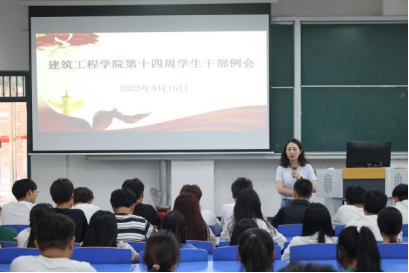 为提高学生干部积极性、主动性以及学生干部的综合素质,为学生提供更好的服务。2023年5月15日中午,建筑工程学院在郑州校区B102教室召开了第十四周学生干部例会。会议由建筑工程学院辅导员李慧杰主持,党总支副书记刘亚娟,辅导员李政、宋春磊、李玉飞、张慧以及22级学生会全体成员和各班班长、团支书参加此次会议。