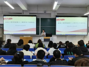为进一步加强学生干部的自我建设,增强责任意识,增进各部门之间的交流,提高工作水平,建筑工程学院于2023年11月20日在郑州校区B102教室(开封校区A101教室)组织召开第十二周学生干部例会。会议由建筑工程学院学生会主席林朝阳主持,全体学生会成员、班长、副班长、团支书参加。