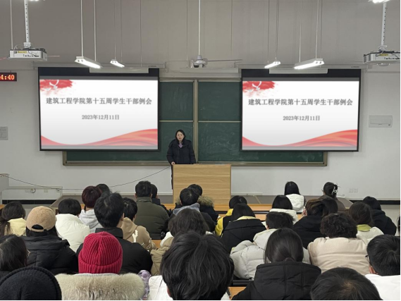 为提高学生干部先锋模范作用,调动学生干部积极性,引导学生干部明确工作方向和工作重点。2023年12月11日,建筑工程学院在开封校区A101(郑州校区B101)教室组织召开第十五周学生干部例会。会议由建筑工程学院党总支副书记刘亚娟主持,团总支书记王莹、学工办主任史真、辅导员赵影以及全体学生会成员、班长、副班长、团支书参加。