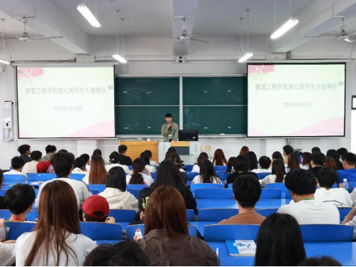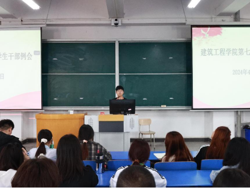 为进一步加强学生干部的自我建设,增强责任意识,增进各部门之间的交流,提高工作水平,建筑工程学院于2024年4月13日在郑州校区B301教室组织召开第七周学生干部例会。会议由建筑工程学院团总支书记王莹主持,全体学生会成员以及各班班长、副班长、团支书参加。