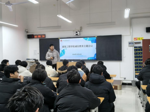 为强调考试诚信的重要性,并督促同学们在即将到来的期末考试中自觉遵守考试纪律,做到公平、公正、公开,建筑工程学院于2024年12月23日-24日期间组织召开诚信考试主题班会,会议由各位辅导员主持,各班同学共同参加。