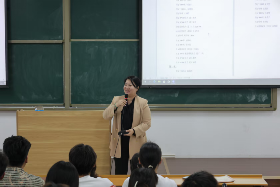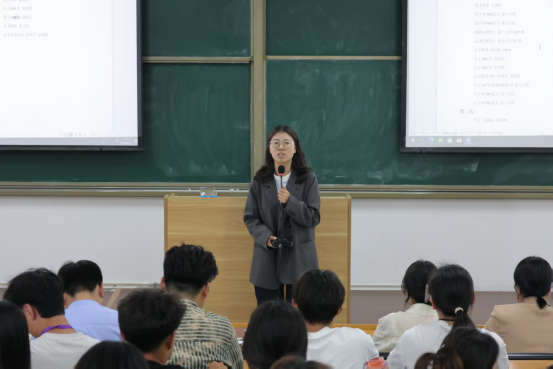 随后,王莹围绕团队凝聚力与学生会换届交接展开讲述。她指出凝聚力是团队高效运转的核心纽带,需要靠团结协作让集体智慧在服务同学与活动策划中充分释放。她谈到换届交接最重要的是责任意识、创新思维与团队精神的传承,呼吁23级干部做好“传帮带”,以经验助力成长,让24级同学更快融入,共同推动学生会工作再上新台阶。