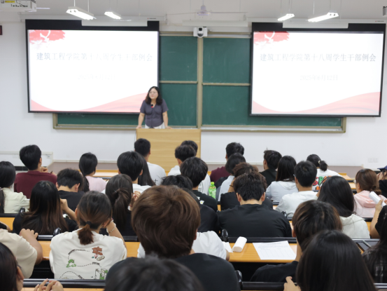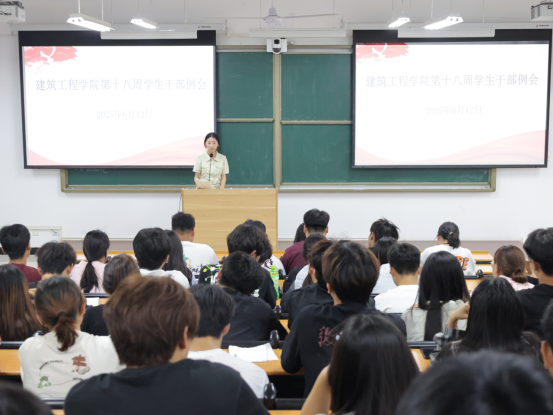 为锻造德才兼备的学生干部梯队,深化自我管理与能力建设,强化责任担当意识,精准把握学生工作的核心方向与关键任务。2025年6月12日,建筑工程学院在开封校区D101教室成功组织召开第十八周学生干部例会。本次会议由学工办主任史真主持,全体学生会共同参加。