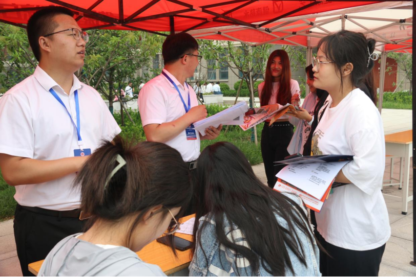双选会现场气氛热烈,应聘学生精神饱满,自信大方,手持精心准备的简历材料,认真浏览招聘信息,积极主动地向心仪用人单位自我推荐。用人单位的招聘人员热情地向学生推荐就业岗位并耐心答疑解惑。当天下午,用人单位在学校提供的教室对应聘学生进行现场面试,大大提高了双选招聘效率。