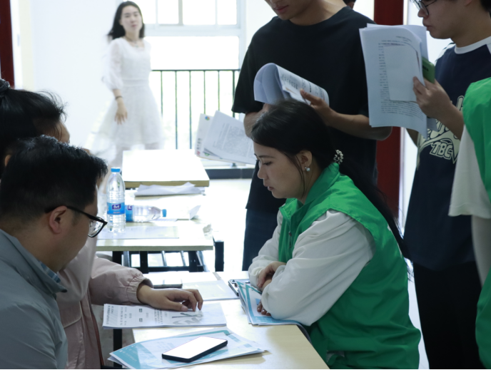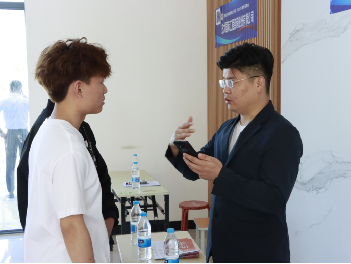 双选会现场气氛热烈,秩序井然。众多知名企业与建筑工程学院的学子们进行了深入的交流与互动,同学们精神抖擞,自信从容、态度诚恳,手持精心准备的简历,认真浏览和了解各企业的招聘信息,积极地向心仪的企业展示自己的专业知识与技能,展现出蓬勃的朝气和对未来的信心。企业代表们认真地查阅了同学们的简历,并耐心解答他们的疑问,仔细评估每一位求职者的潜力与能力。当天中午,用人单位在学校提供的教室对应聘学生进行了现场面试,大大提高了招聘效率。双方在交流中不断碰撞出智慧的火花,共同描绘着未来发展的蓝图。