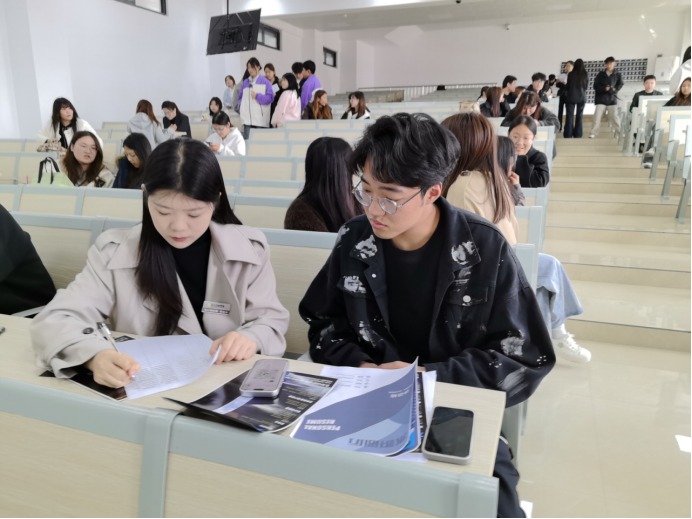 宣讲会上,企业负责人围绕企业发展历程、业务布局、企业文化、人才培养体系及招聘岗位等内容进行全面介绍。负责人详细讲解了公司在室内外装饰设计、工程施工、整装服务等领域的优势,深入分析行业发展趋势与职业成长路径,为同学们提供精准岗位对接、扩展职业发展空间、助力高质量就业奠定坚实基础。企业代表还结合实际项目案例,与同学们互动交流,耐心解答大家关心的职业规划、技能提升、实习就业等问题,让同学们对企业与行业有了更直观、深入的认识。