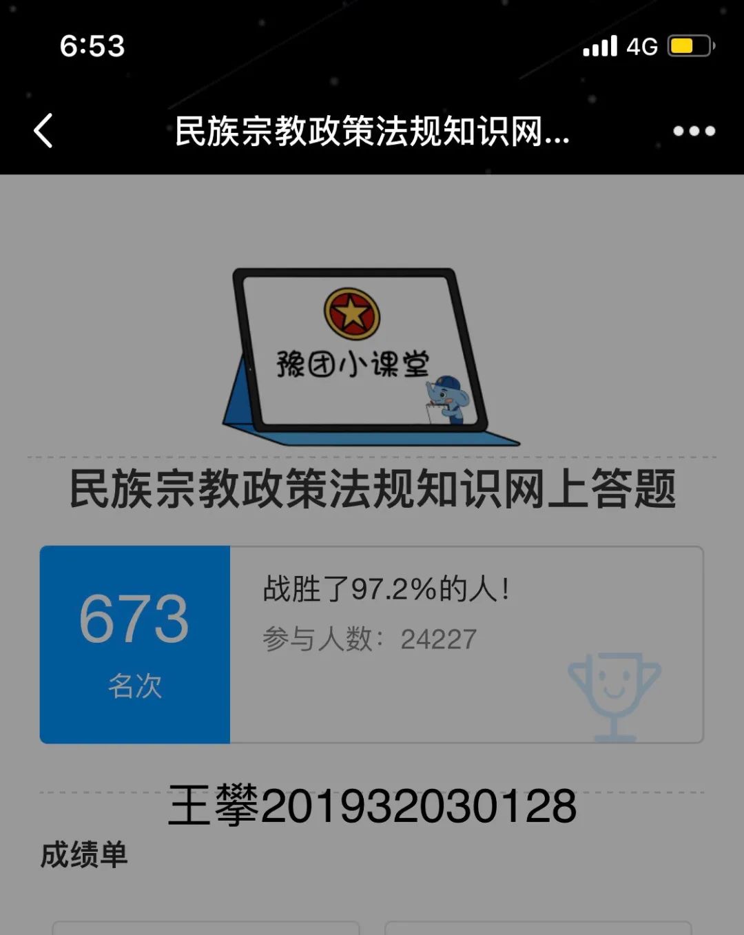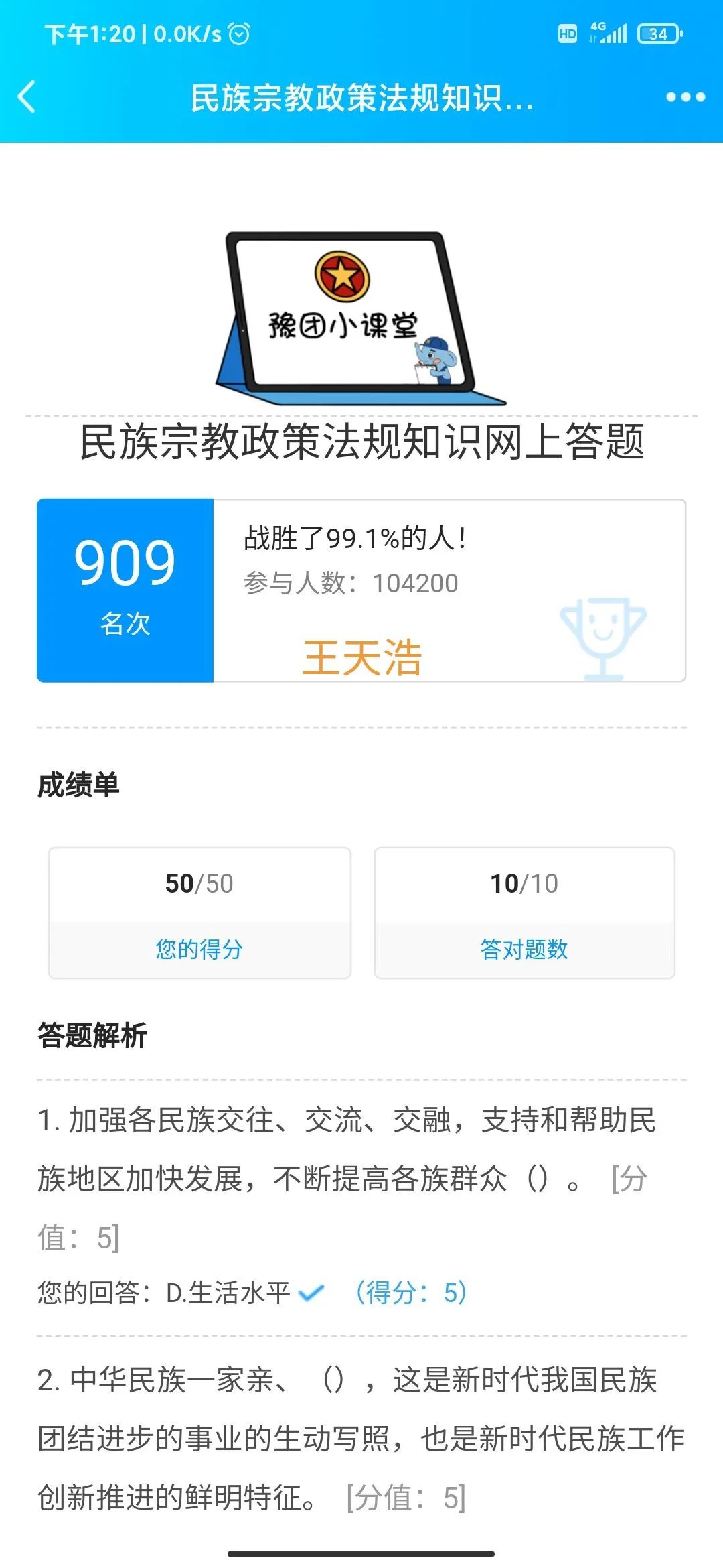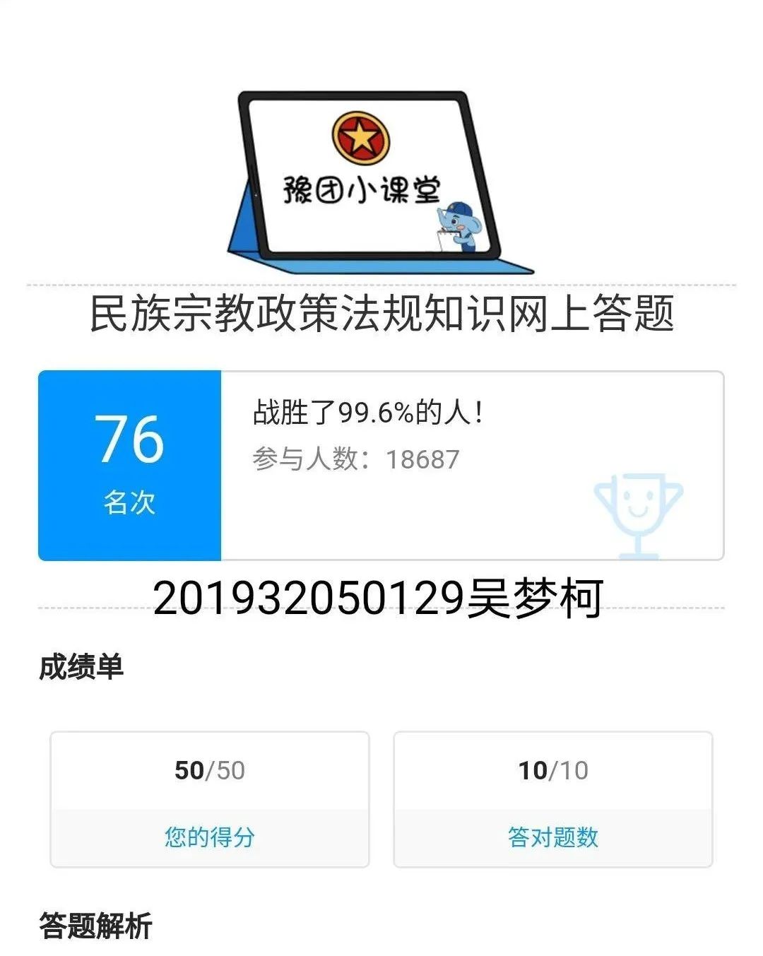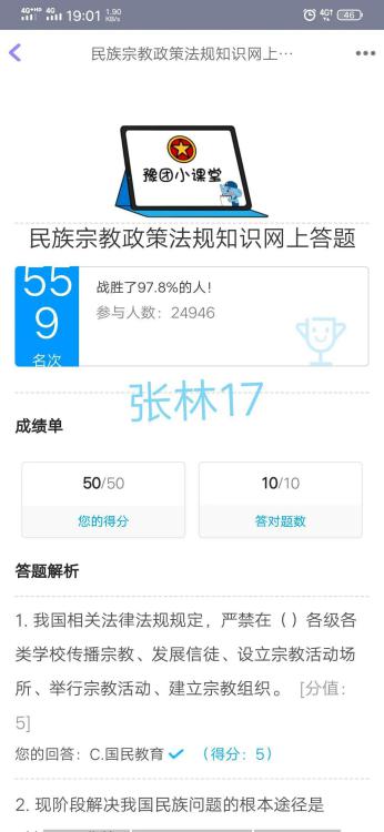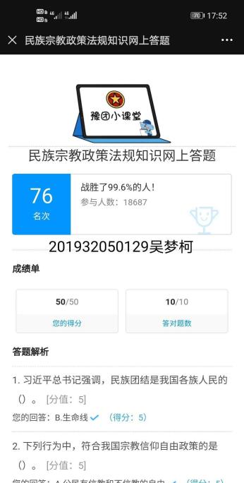 为普及宗教知识,加强马克思主义宗教观教育,建筑工程学院响应上级号召,于2020年9月12日-21日,建筑工程学院组织全体学生积极开展民族宗教政策法规知识网络答题活动。