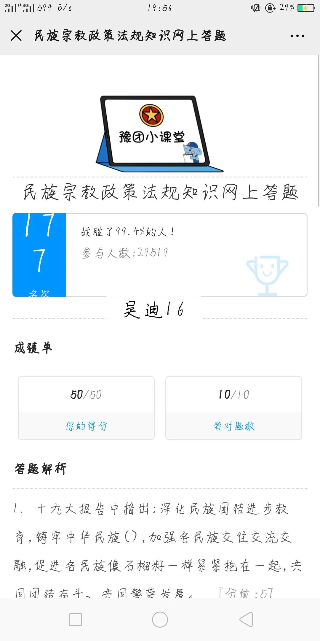 小筑们在这个时间段通过微博链接和微信公众号进行答题。比较特别的是这次题目多变,小筑们通过多次答题深入体会民族团结的力量,了解民族宗教相关法律法规。