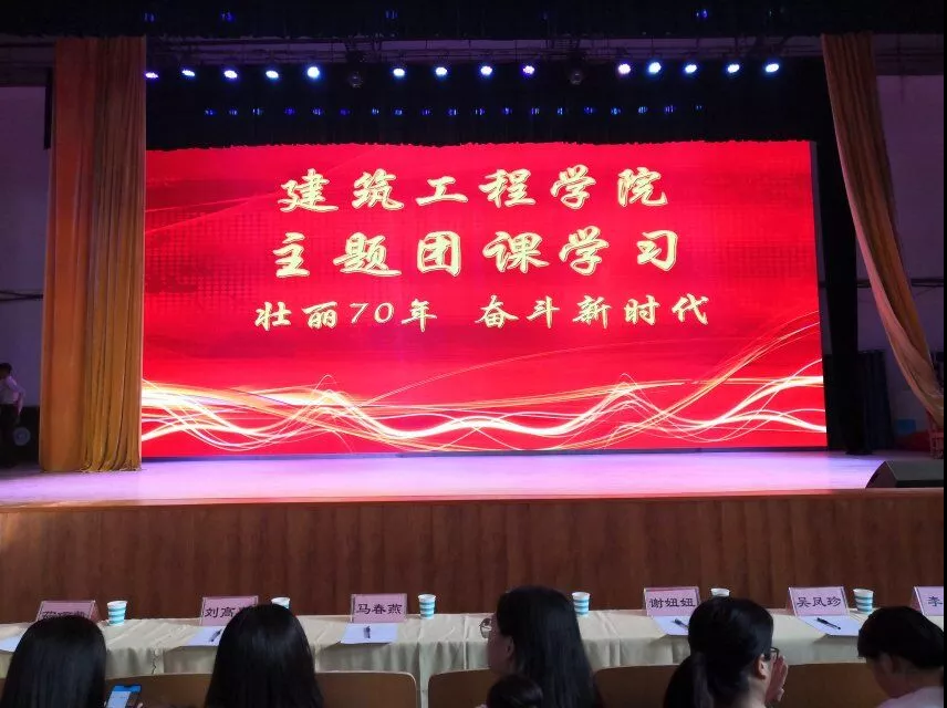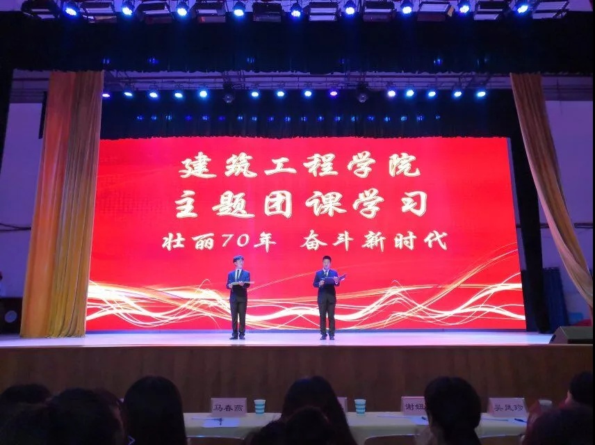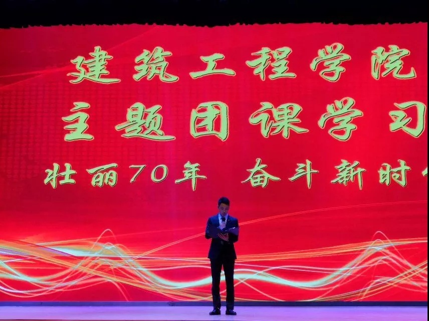 为了培养同学们的爱国主义精神,不断提升学生作为中国共青团团员的思想政治水平,河南应用职业技术学院建筑工程学院于2019年4月23日下午18:00在大礼堂举办了以“改革开放40周年和中华人民共和国成立70周年”为主题的团课,此次活动由18级四组学生代表围绕此次团课主题进行演讲,17级18级全体学生成员参与此次活动。