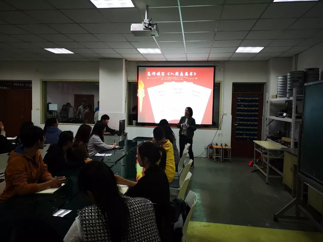 首先让同学们了解了团员发展的流程:1、确定入团积极分子;2、机关团委根据各支部上报的入团积极分子培养计划,确定发展名额,分配给机关和直属单位;3、机关和直属单位根据发展名额,由团支部在入团积极分子中确定发展对象人选;4、入团积极分子填写《入团志愿书》;5、召开支部大会讨论通过;6、机关团委根据发展计划和团支部决议,召开机关团委会批准;7、举行入团宣誓。