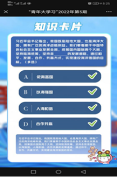 2022年3月21日—3月27日建筑工程学院团总支组织2020级、2021级学生进行网上主题团课学习,并完成2022年第5期青年大学习网上答题活动。