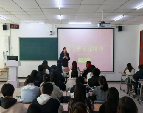 随后,王莹引用一首《念奴娇·追思焦裕禄》让同学们更加深入了解了党的好干部焦裕禄无私奉献的情怀与英雄本色,也道出了无数人心中优秀共产党人的良好形象与精神风貌。要求我们要按照习近平总书记的要求,“深学、细照、笃行”焦裕禄精神,努力做焦裕禄式的好青年,秉持“父老生死系”的情怀,坚定“毋改英雄意气”的信念,怀揣“绿我涓滴”的决心,为实现中华民族伟大复兴不懈奋斗。