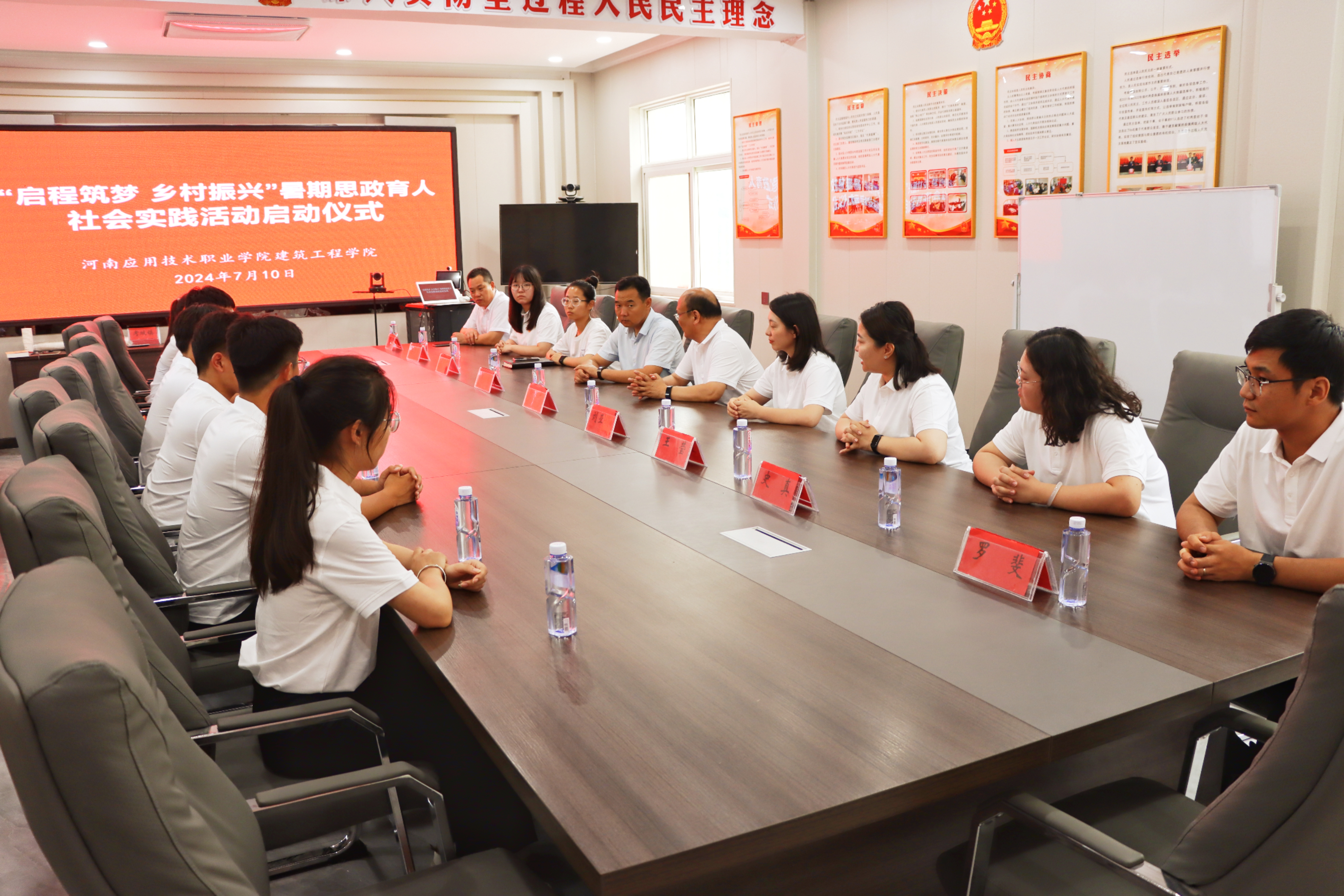 为深入学习贯彻党的二十大精神,教育引导广大青年学子在实践中增强责任感和使命感,让同学们亲身感受新时代农村建设成果,yl7703永利集团建筑工程学院“启程筑梦 润心教育”社会实践团于7月10日到达兰考县考城镇举行2024年暑假“三下乡”社会实践活动启动仪式,本次会议由考城镇团委书记王景焕主持,考城镇镇长李良、建筑工程学院党总支书记张虎、副书记刘亚娟、团总支书记王莹、学工办主任史真、辅导员罗斐、教师代表李雪萌及学生李文涵等团队成员参会。