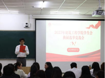 新时代赋予新使命,新时代书写新篇章。为进一步加强学生干部队伍建设,选拔一批政治坚定、作风过硬、品学兼优、素质全面的学生干部。2023年6月8日,建筑工程学院2023年学生会换届选举大会在SC204成功举办,会议由学院党总支副书记刘亚娟主持、辅导员李慧杰、李政、宋春磊、张慧、李玉飞参加。