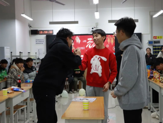 教室里的每个同学都能感受到新年的来临,喜庆的氛围让同学们由衷地感到放松和愉悦。联欢会形式不拘一格,有的围坐一起品尝同学们外出采购的美味佳肴,说说话聊聊天,共同回忆旧岁的点点滴滴,展望充满无限可能的未来;有的打上闪光灯,将教室变身为演唱会现场,学生们轮流上去展示自己的歌喉,用歌声唱出青春的故事;有的组织各项游戏,抢凳子、击鼓传花、你泼我挡,主打的就是一个欢乐;也有的精心准备各种节目,依次上台表演,同学们真是多才又多艺。