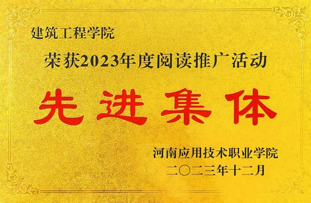 为深入学习宣传贯彻党的二十大精神和习近平总书记致首届全民阅读大会贺信精神,大力推动书香社会建设,涵育社会阅读风尚,充分发挥高校图书馆在全民阅读体系中的阵地作用。建筑工程学院于2023年4月—11月顺利开展阅读推广系列活动并荣获2023年度阅读推广活动“先进集体”。