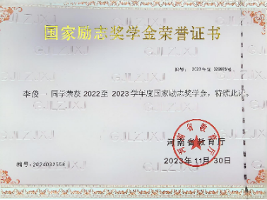 2023年11月,获得国家励志奖学金