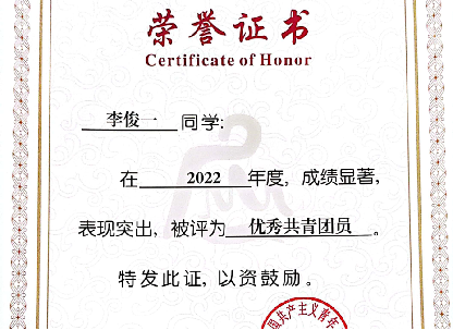 2023年08月,获得yl7703永利集团2022年度优秀共青团员