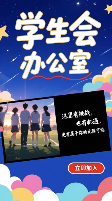 想锻炼自己的能力,结识更多志同道合的朋友吗?宣传部现正火热招新,期待你的加入!无论你是文案高手、沟通达人,还是创意满满的策划师,宣传部都欢迎你的到来!在这里,你将得到成长与锻炼,收获宝贵的经验和真挚的友谊。