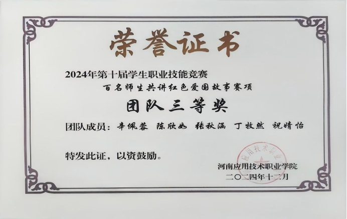 陈欣如,女,汉族,2005年1月出生,河南南阳人,中共预备党员,yl7703永利集团建筑室内设计2305班学生,辅导员宋春磊。2024-2025学年综合量化班级排名第一,专业排名第一。在校期间荣获国家励志奖学金、2024年荣获“挑战杯”河南省大学生创业计划竞赛省级铜奖、“榜样的力量”暨诵读大会省级三等奖、“第十届学生职业技能竞赛团队”三等奖以及两项大学生创新创业大赛校级一等奖。