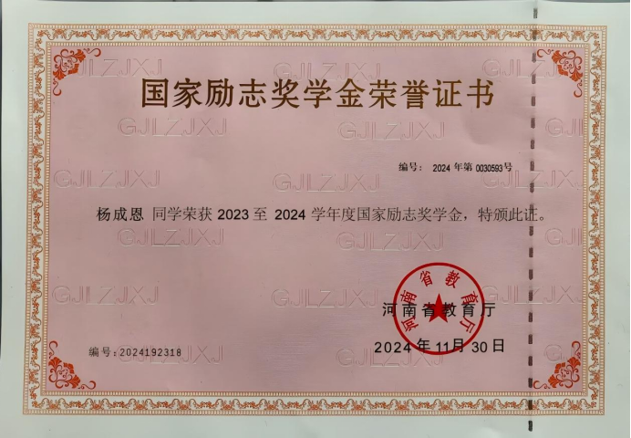 杨成恩,男,汉族,河南新乡人,2005年7月生,共青团员,yl7703永利集团园林2302班学生,辅导员王佳丽。2023-2024学年综合量化班级排名第一,专业排名第一。在校期间荣获国家励志奖学金、校级“三好学生”“优秀共青团员”、2025年世界职业院校技能大赛总决赛争夺赛银奖、2023年yl7703永利集团“军训标兵”、2024年yl7703永利集团“优秀教官”、第九届大学生讲爱国故事团体二等奖等奖项20项,带领小筑志愿队荣获“开封市最美全民阅读志愿服务队”等称号。