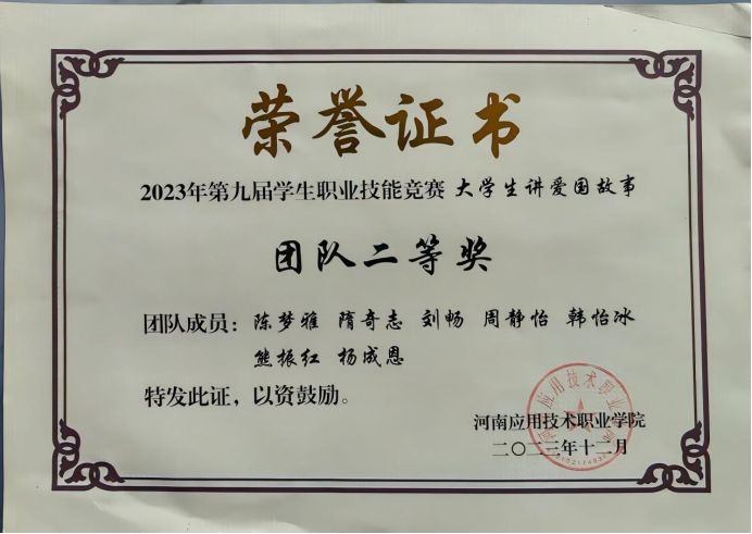 作为学生,他从入学之初就树立了明确的目标,始终保持着饱满的学习热情,从未有过丝毫松懈。对待专业知识,他坚持有计划、有步骤地学习,通过课前预习、课上专注、课后复盘的闭环,不断巩固所学;该生在专业课程上也取得了优异的成绩,连续4个学期保持班级前列。作为学生干部,他团结同学,是老师的好帮手,有较强的集体荣誉感。带领班级获得“先进班集体”“书香班级”等称号。未来,他将继续保持这份对学习的热忱,在专业道路上走得更稳、更远,用知识武装自己,用行动践行初心,努力成长为对社会有用的专业人才。