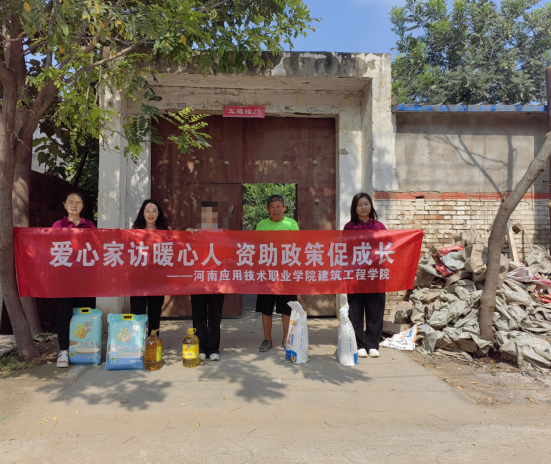 为深入贯彻党的二十大精神,推动学习贯彻习近平新时代中国特色社会主义思想主题教育走深走实,进一步落实落细国家资助政策,切实了解学院经济困难学生的实际情况,全面做好贫困生精准帮扶工作,根据学校党委学生工作部安排和我院实际情况,2023年8月11日—12日,建筑工程学院党总支副书记刘亚娟带领辅导员李慧杰、资助专员张慧先后前往开封市尉氏县大营镇、十八里镇等地开展资助政策宣传和贫困生走访慰问活动。