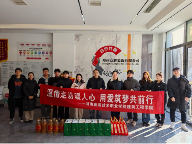 为深入学习贯彻党的二十届三中全会精神,坚决落实好以习近平同志为核心的党中央关于教育和学生资助工作的决策部署,推动惠民生、暖民心的学生资助举措落到实处、见到实效,同时及时准确了解我院岗位实习家庭经济困难学生日常工作、生活和思想情况。2025年1月15日至16日,由建筑工程学院党总支副书记刘亚娟带队,学工办主任史真,辅导员陈静静、李希望、尹宇龙一同前往郑州竞辉装饰有限公司和开封梵高先生装饰设计工作室走访慰问2022级岗位实习家庭经济困难学生。为学生送去学院的问候,送上新春的祝福。