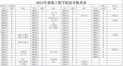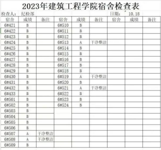 为进一步加强宿舍学生管理,提高学生安全防范意识,培养学生健康的生活习惯,营造干净卫生的宿舍环境。建筑工程学院纪检部于2023年10月16日-10月22日对我院学生宿舍开展例行检查。