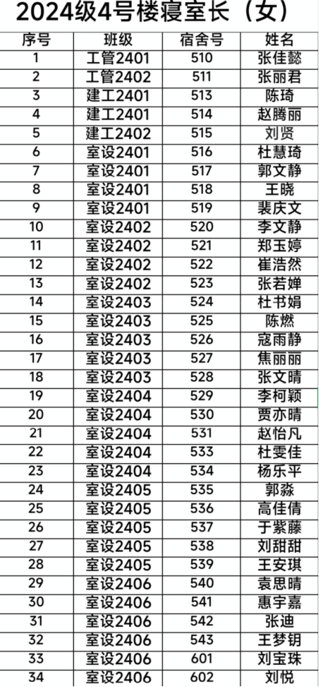 家人们谁懂啊!建筑工程学院4号楼即将迎来一批超给力的“寝室操盘手”!为了让咱们的宿舍从“舒适大本营”变身“文明样板间”,学院最近搞了一场超严格的宿舍长“选秀大赛”!经过层层PK,2024-2025学年第二学期的寝室长天团终于成团出道,名单新鲜出炉,速来围观!